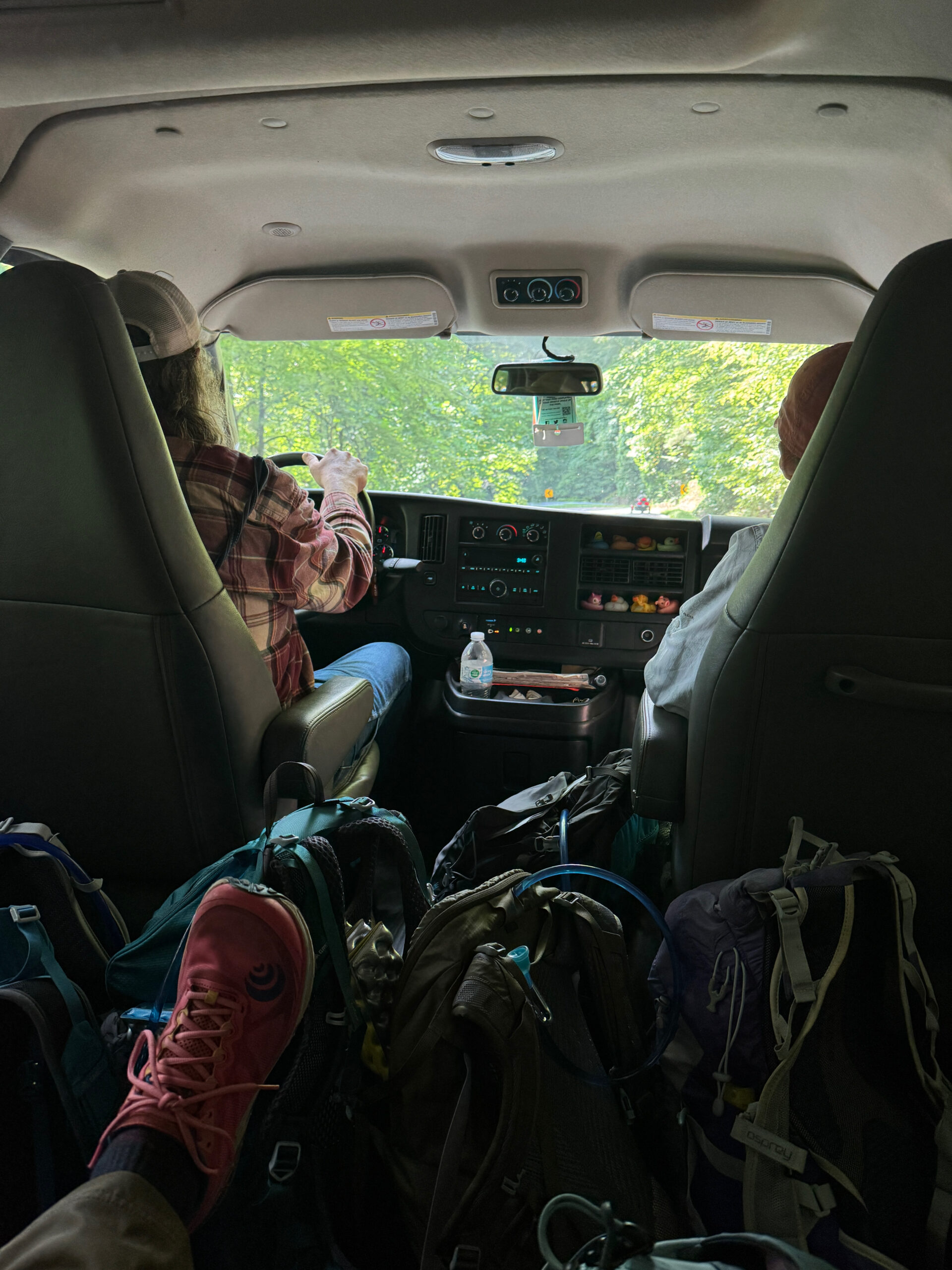 The next morning, the smell of maple syrup filled the air as the ten of us gathered for breakfast. We then headed down the street to meet Lumpy, our shuttle driver. It’s been a long time since I felt car sick, but today that familiar feeling returned and stayed with me through the first hour of our hike. Our hiking journey started under a canopy of rhododendrons, moved through rolling hills, and ended with a nice climb. I thoroughly enjoyed getting to know everyone along the way.