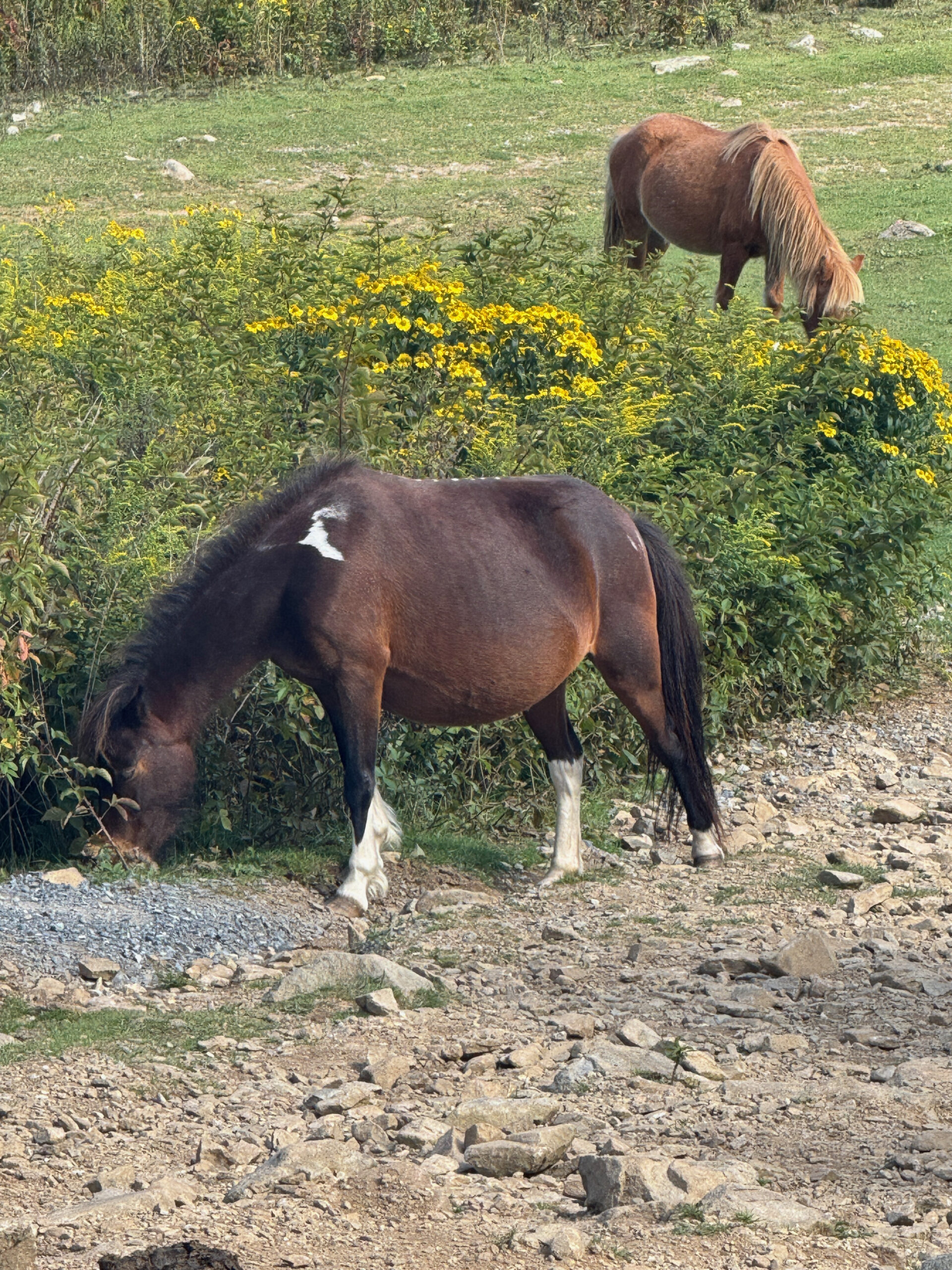 We came upon heavy roots and rocks when we crossed paths with an older man, his backpack full and his smile beaming. He shared that he was camping on Pine Mountain and had come to hike the trails from Brown County, Indiana. He also let us know that the wild ponies were out and that we would see them in a couple of miles. He was clearly thrilled to be here, as he shared with Kristen and a few others that he was 93 years old and that he hiked alone because his friends were all gone and that he’s too slow to hike with the younger folks. I couldn’t help but marvel at how remarkable that truly is. What excuses do we have to not hike and to not do the things we love?