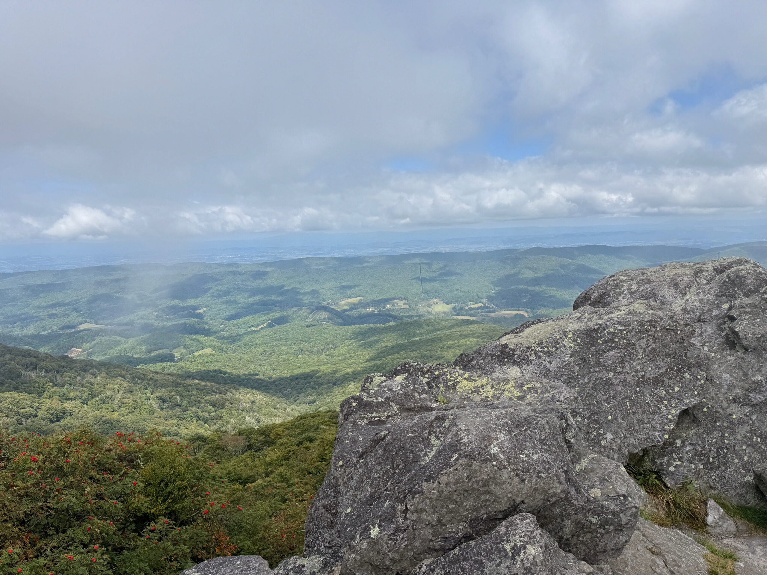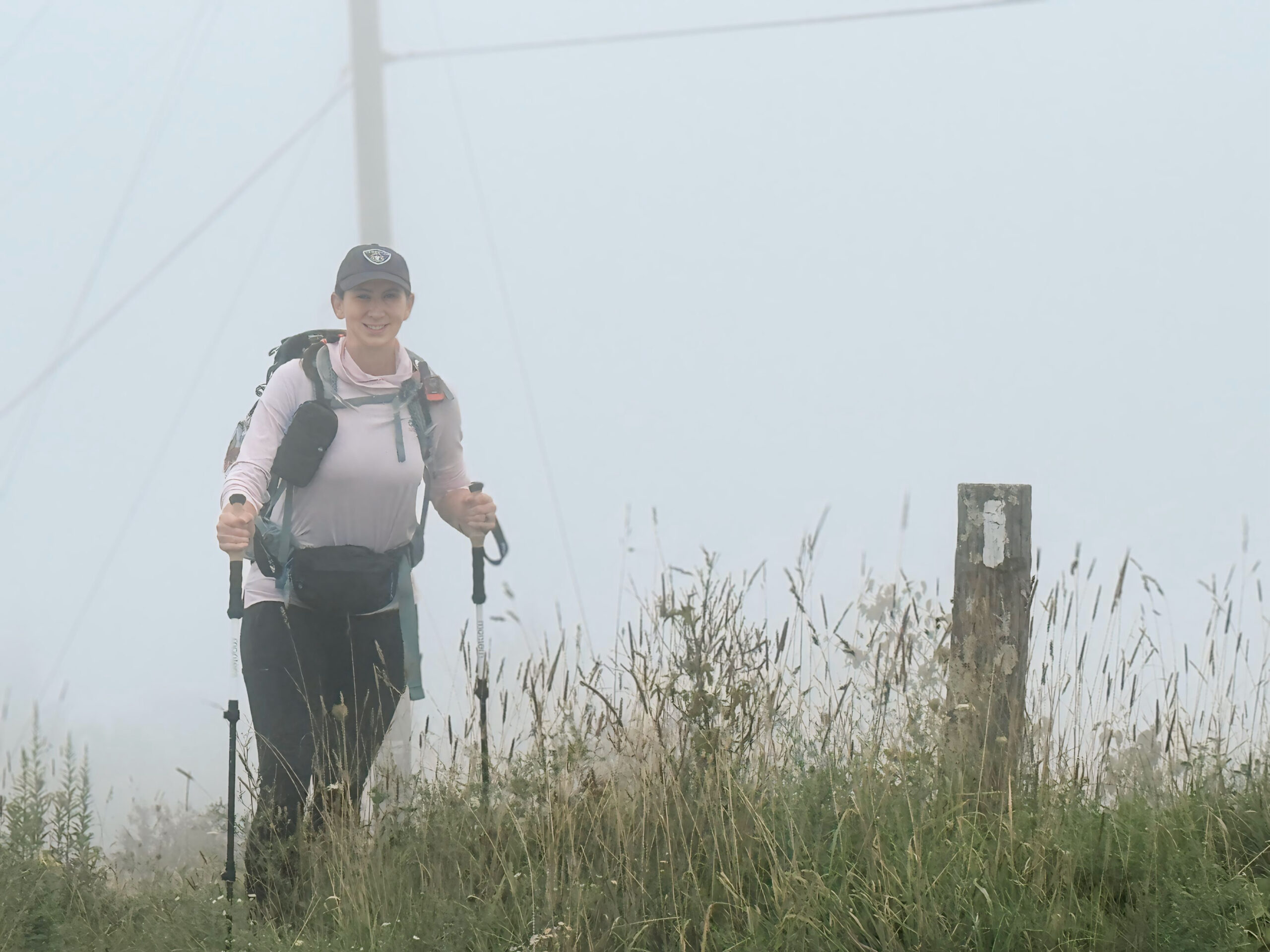 Today, we experienced our longest day yet on the Virginia section of the Appalachian Trail, and it was nothing short of breathtaking. The weather and views combined to create a truly magical atmosphere. The morning felt like a blend of Halloween and fall, with layers of fog and clouds draping over the grassy meadow, adding an eerie yet beautiful touch to the landscape.
