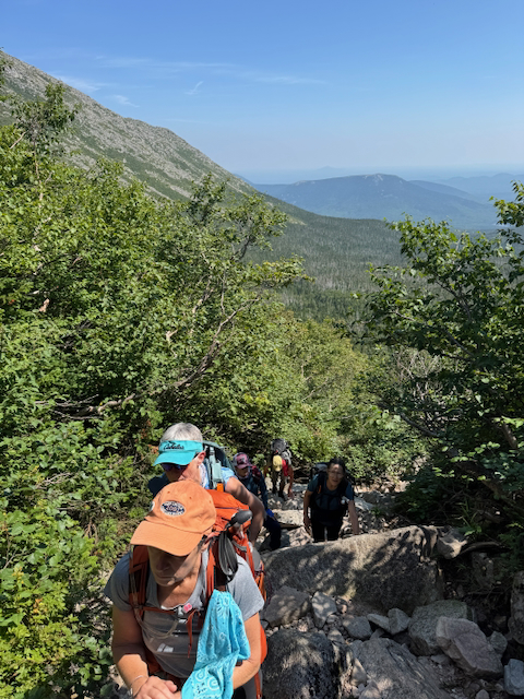 As we began the day, the trail ascended steadily before us, each step a promise of increasing challenge as we climbed higher. Along the way, we encountered two spirited hikers: Kim, a vibrant soul probably in her twenties, and Cheryl, who was marking her 50th birthday with this ambitious ascent. Their laughter echoed on the steep slopes, a testament to their determination to conquer Katahdin in their own unique rhythms.